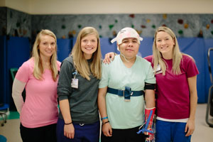 After significant improvement, Jesus was discharged from the hospital and began outpatient therapy. He is very close with his team of physical and occupational therapists and they all agree that he has worked very hard to achieve the progress that he has made. Melissa Kauk, a physical therapist who works with him several days a week says, "Jesus is such a fun patient to work with. He really digs in and is there to participate in every session we have with him. Much of his recovery is due to his attitude and hard work and it's inspiring to be a part of." His favorite activities are working on the elliptical, pedaling on a stationary bike and Wii Boxing.